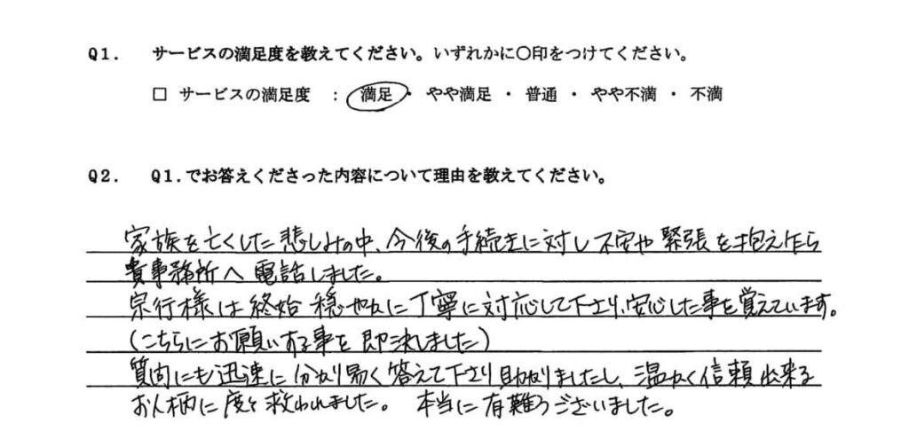 「何より先生の真面目なお人柄に全幅の信頼をおいていました。次にお世話になるとしてもまた先生にお願いしたいと思います。」