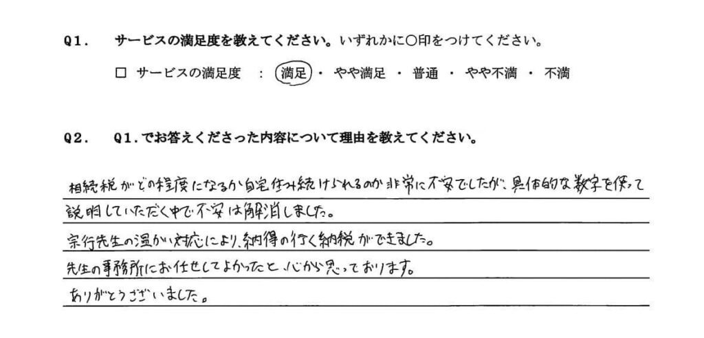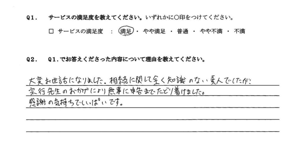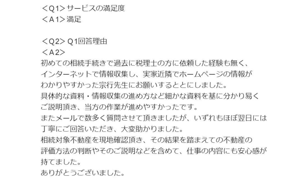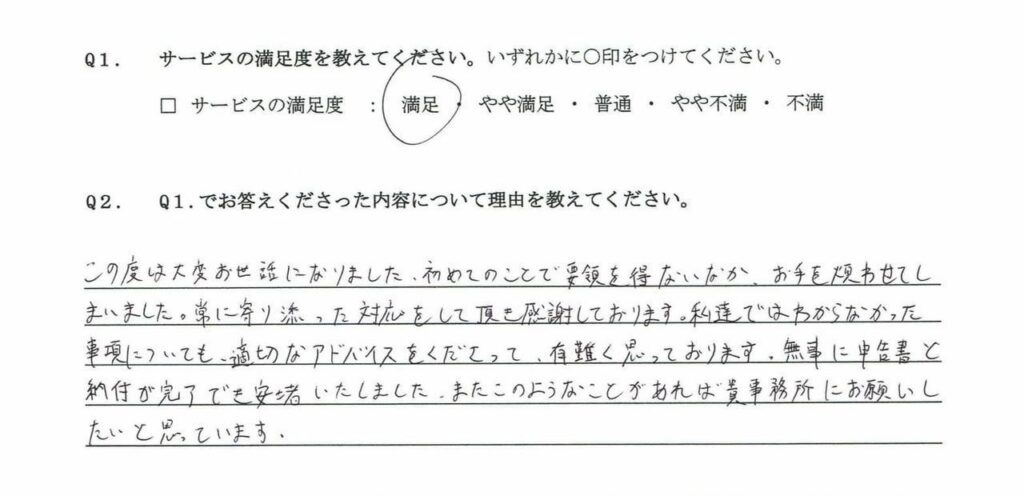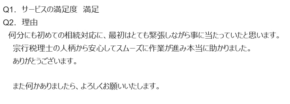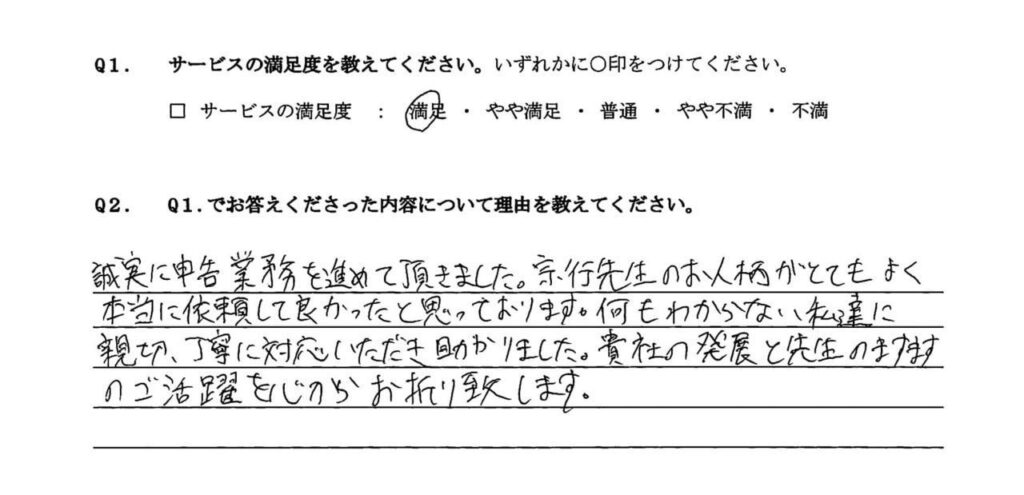 宗行税理士の人柄から安心してスムーズに作業が進み本当に助かりました。