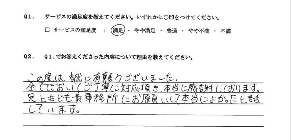 兄ともども貴事務所にお願いして本当によかったと話
