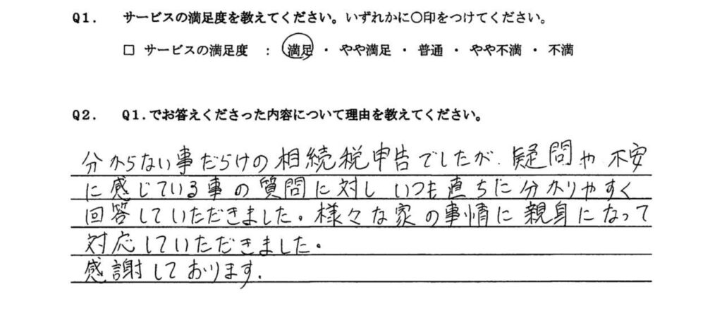 大変お世話になりました。相続に関して全く知識のない素人でしたが、