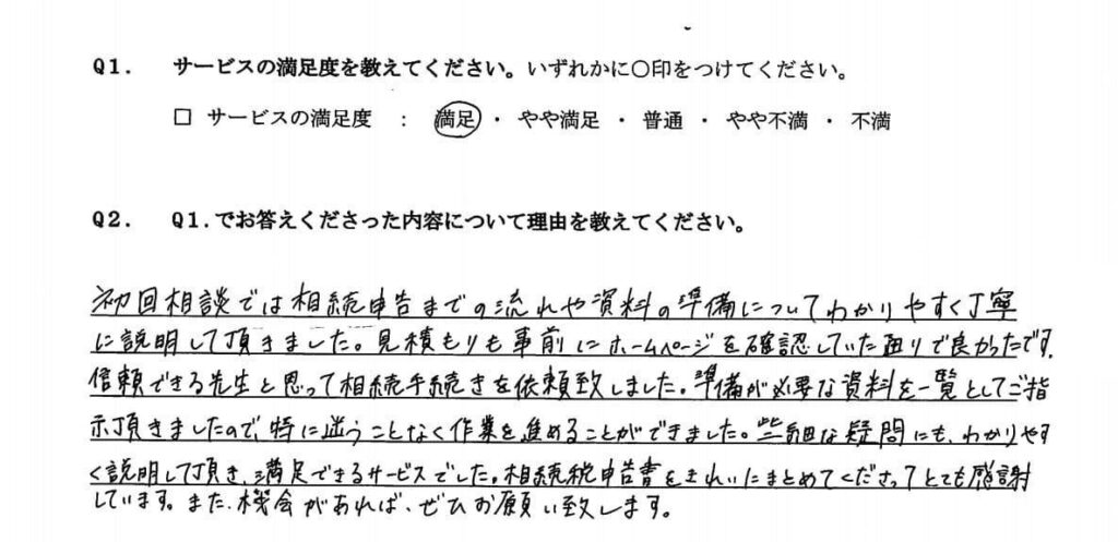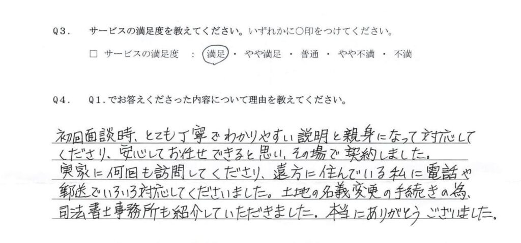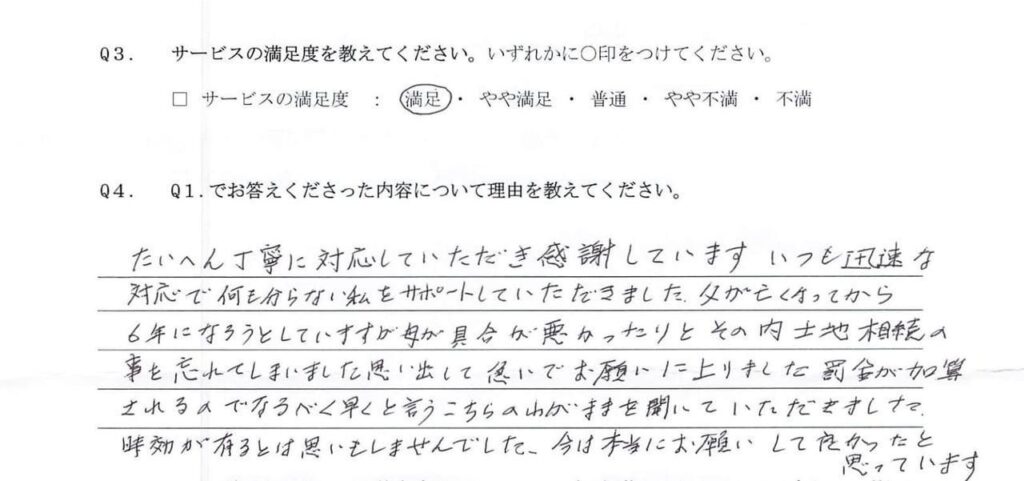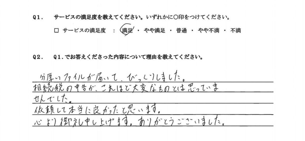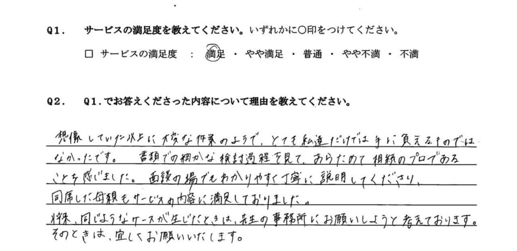 相続を専門的にやられている貴社に依頼して正解でした。