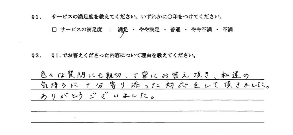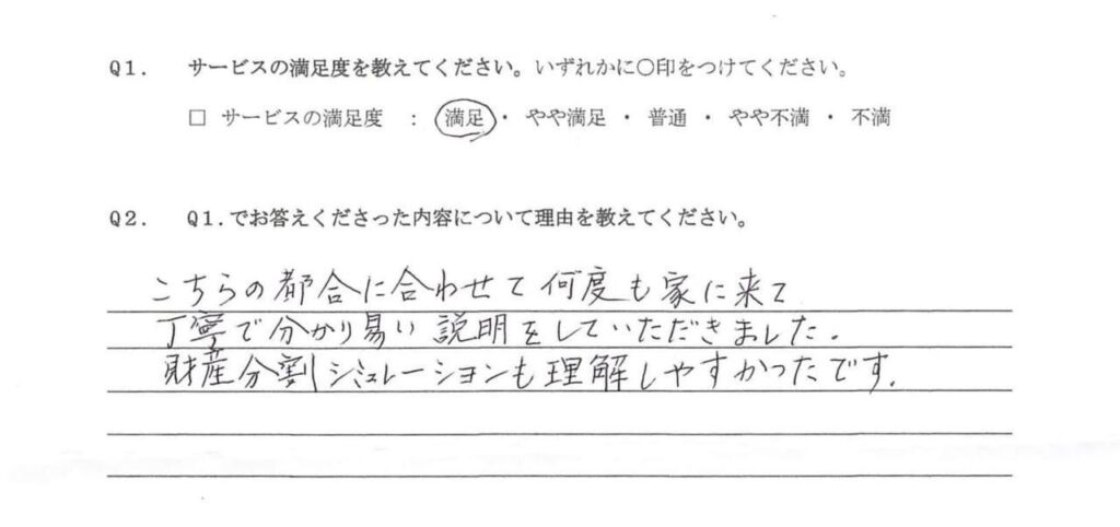 対応にとても満足しています。お渡しされた書類を見てとても細やかに