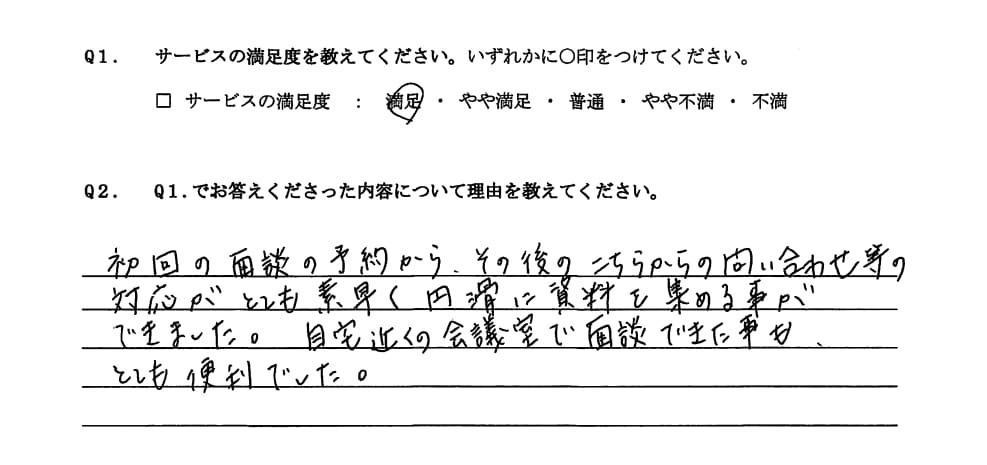 たが、インターネットで貴事務所を知り、お近くでもあったことから面談をお願いしました。初回面接時に踏み
