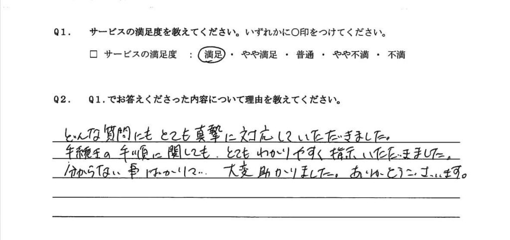 手続きの手順に関しても、とてもわかりやすく指示いただきました。