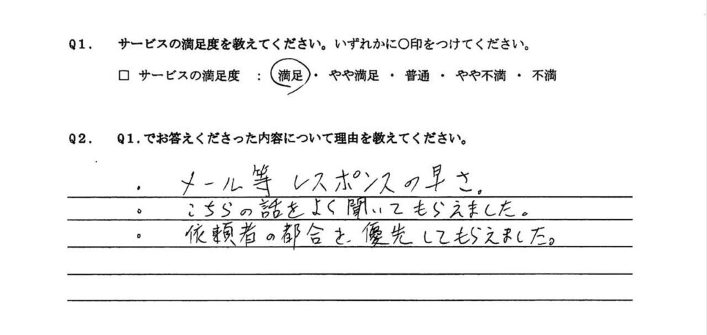 ・依頼者の都合を優先してもらえました。