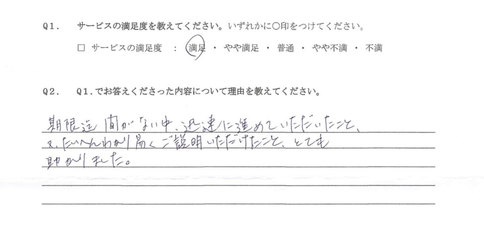 「迅速に進めていただき、わかりやすく説明いただきました」